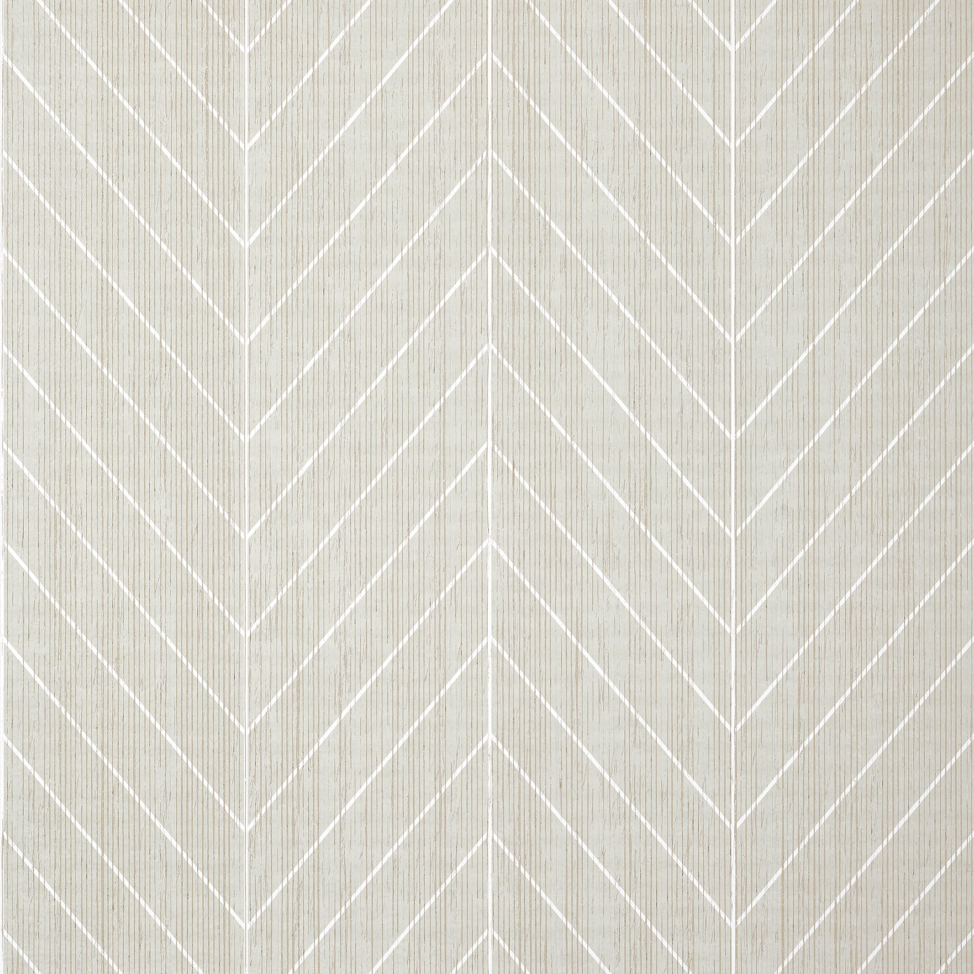 The structured chevron motif is enhanced by a natural paper string backing that introduces subtle texture and variation across the surface. This layered construction gives the wallpaper added depth and visual interest, allowing the crisp pattern to feel more organic and dimensional rather than flat or overly rigid.