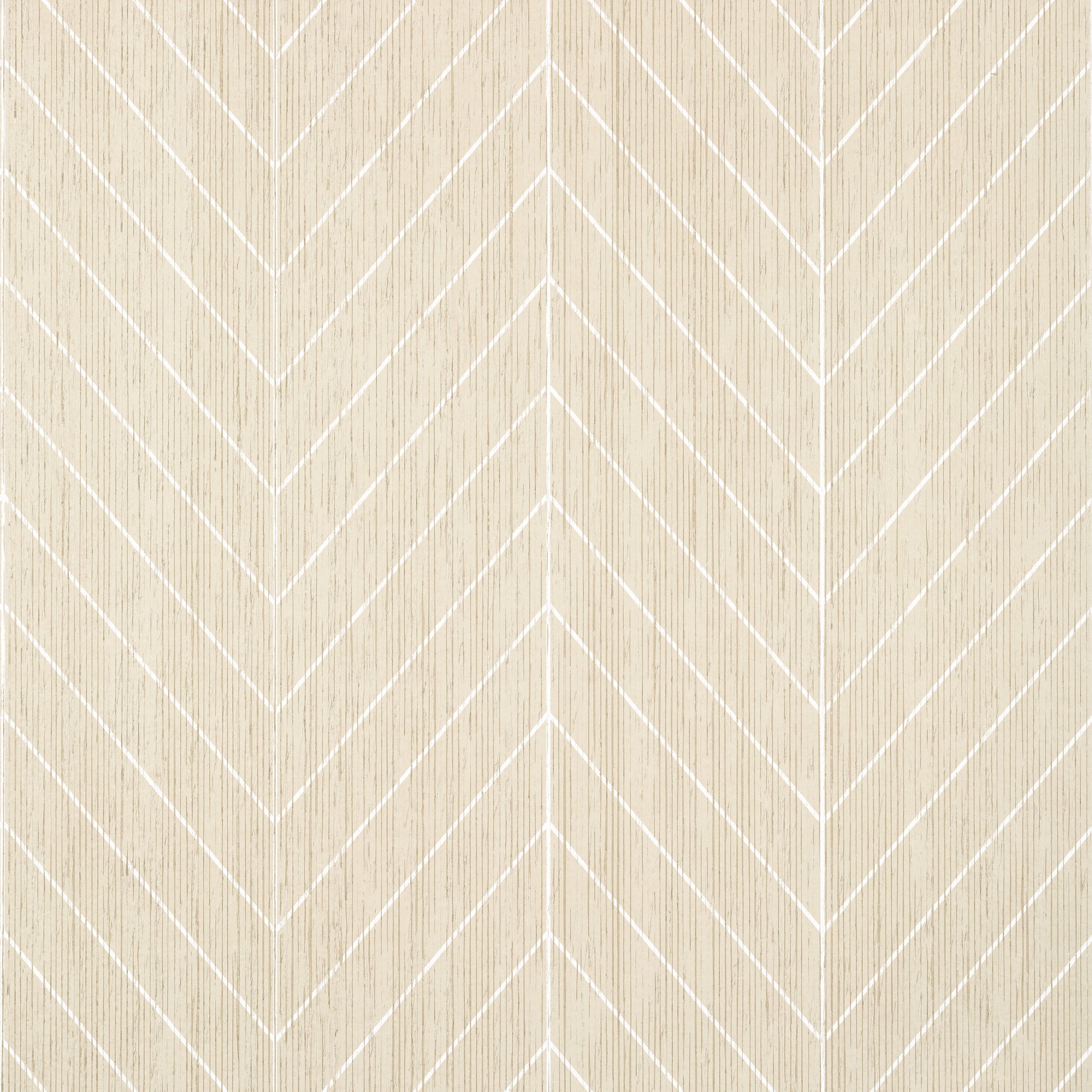 The structured chevron motif is enhanced by a natural paper string backing that introduces subtle texture and variation across the surface. This layered construction gives the wallpaper added depth and visual interest, allowing the crisp pattern to feel more organic and dimensional rather than flat or overly rigid.