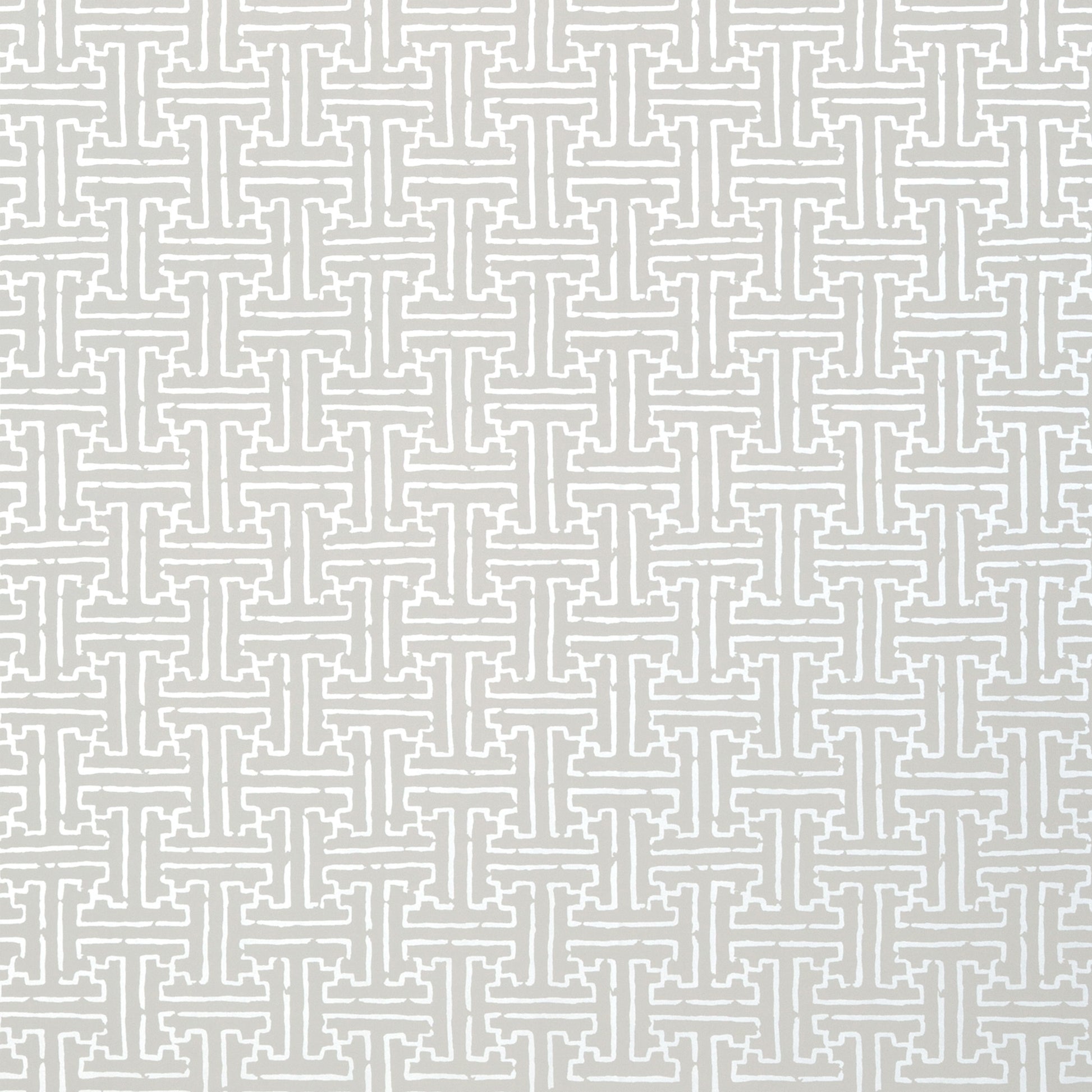 The repeating pattern forms an intricate network of interlocking shapes, creating a sense of structure while maintaining a light, understated presence. Its slightly irregular, broken detailing introduces a vintage quality, giving the wallpaper a relaxed and timeworn appeal without feeling heavy.